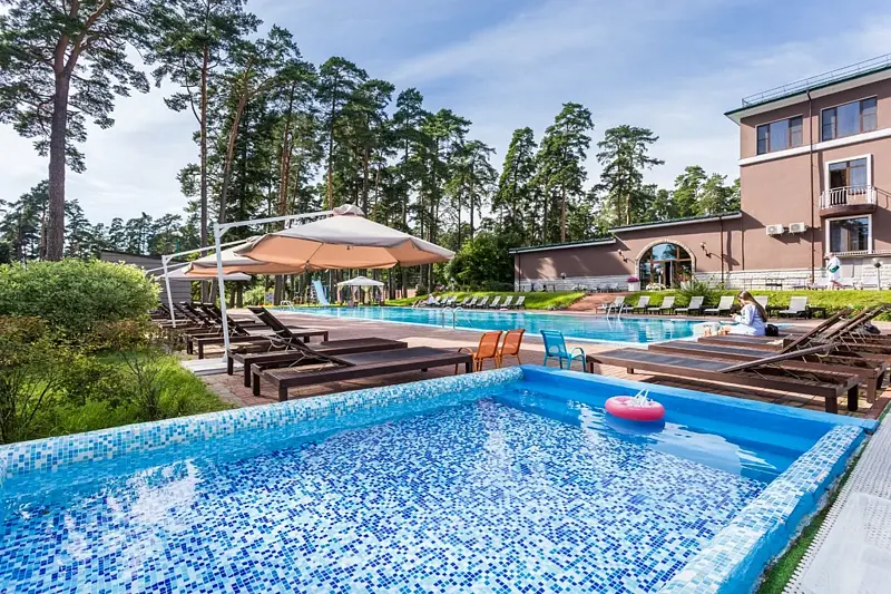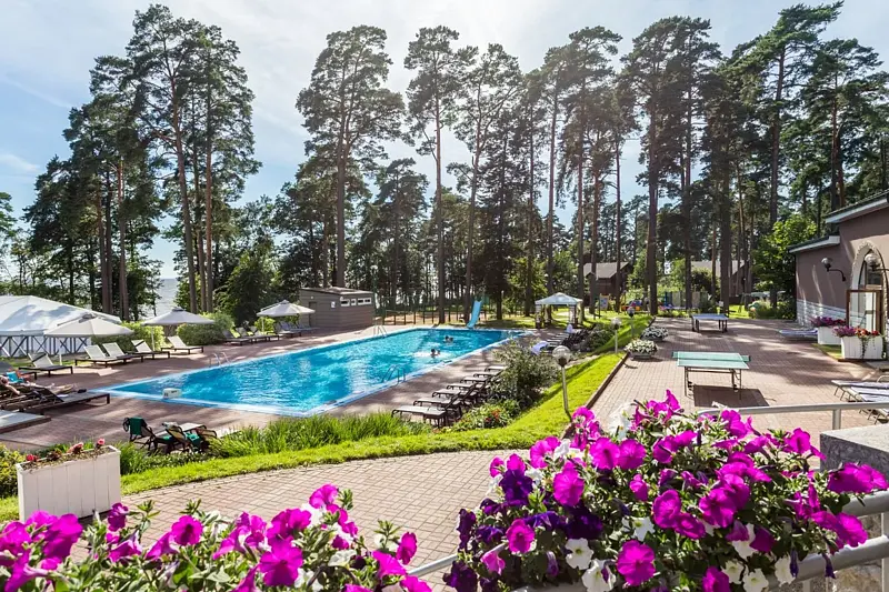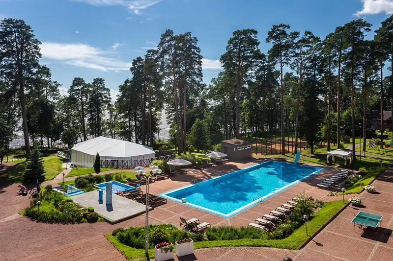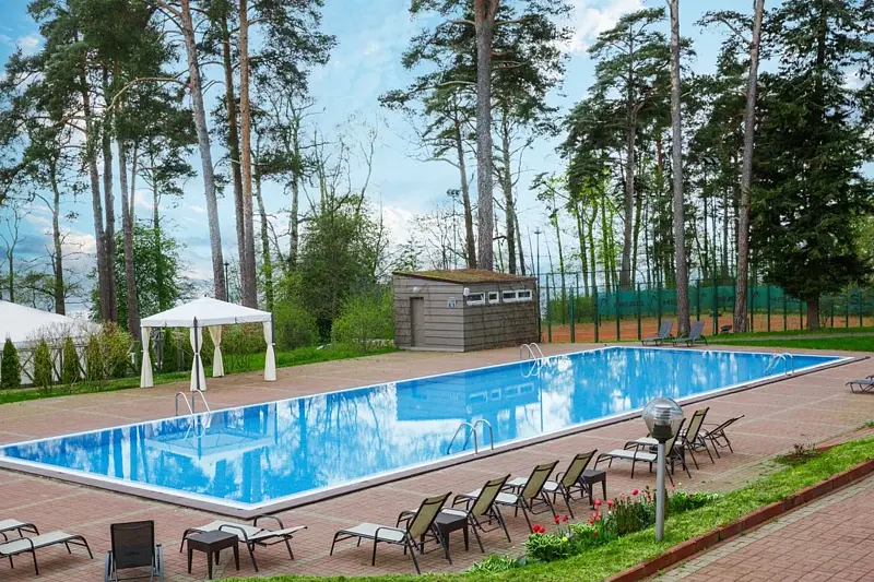 На территории отеля есть ресторан «Птички и ягоды», а также открытый подогреваемый бассейн и крытый бассейн. Гости могут посетить сауны, СПА-кабинеты, поиграть в теннис или футбол на специальном поле.