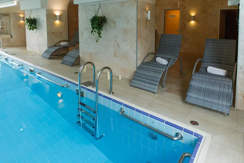 Тип бассейна: крытый бассейнВода в бассейне: подогреваемый бассейнРядом с бассейном: шезлонгиРазмеры: 10 x 5 мПлощадь: 50 м²Время работы: от 9:00 до 22:00Период работы: круглогодичноСанитарный день — каждый последний вторник месяца с 9:00 до 15:00.