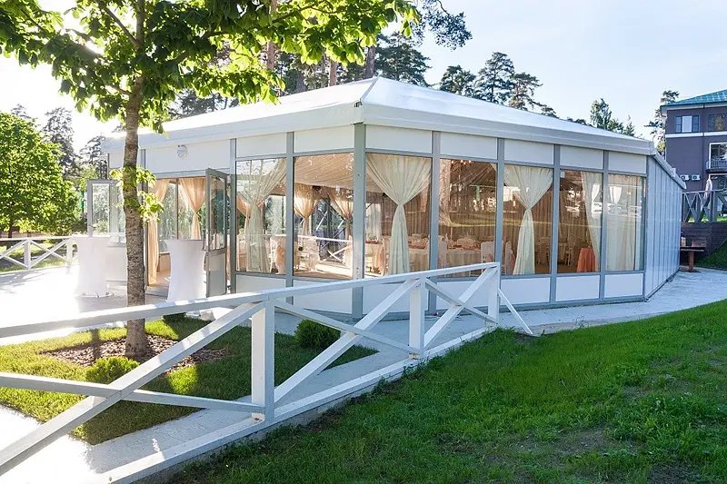 Это специализированная площадка для проведения как камерных, так и масштабных закрытых мероприятий. Работает с мая по октябрь. Вмещает до 100 гостей.