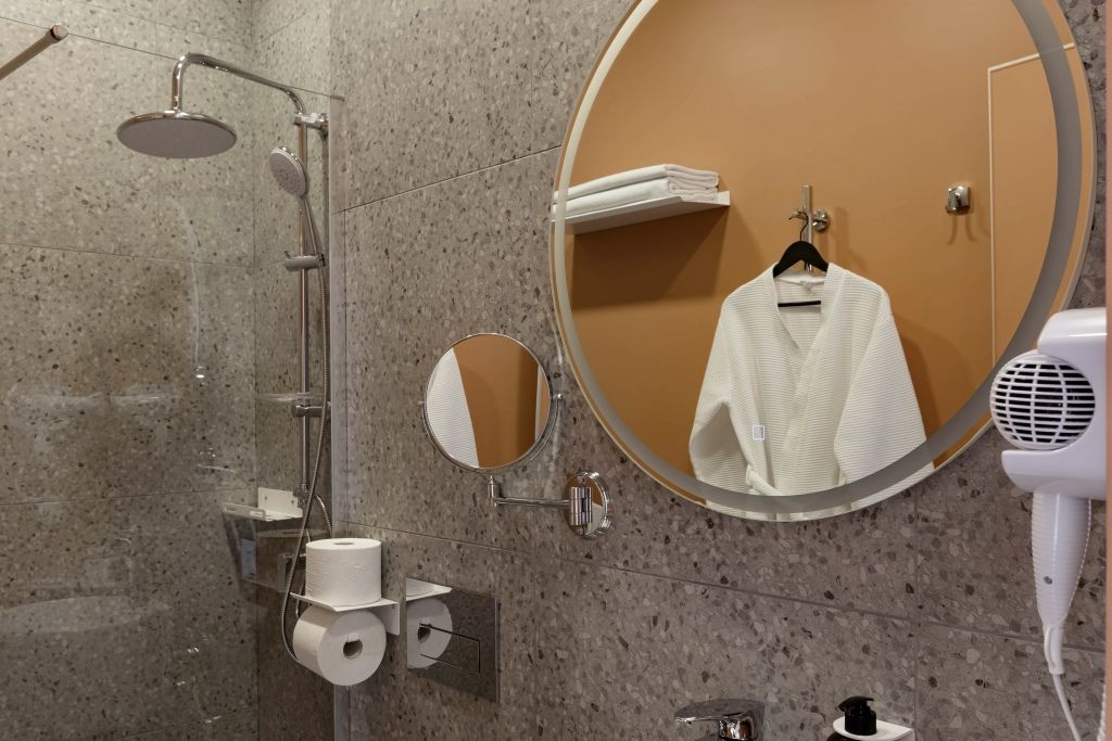 Номер уютно обставлен и оснащён необходимым, чтобы отдохнуть после долгого и насыщенного дня. Имеются телевизор, мини-бар и халат. Перечисленные услуги есть не во всех номерах.