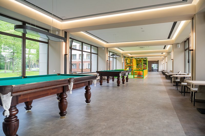 - Игровая зона: настольный теннис, аэрохоккей, бильярд, игровые автоматы.