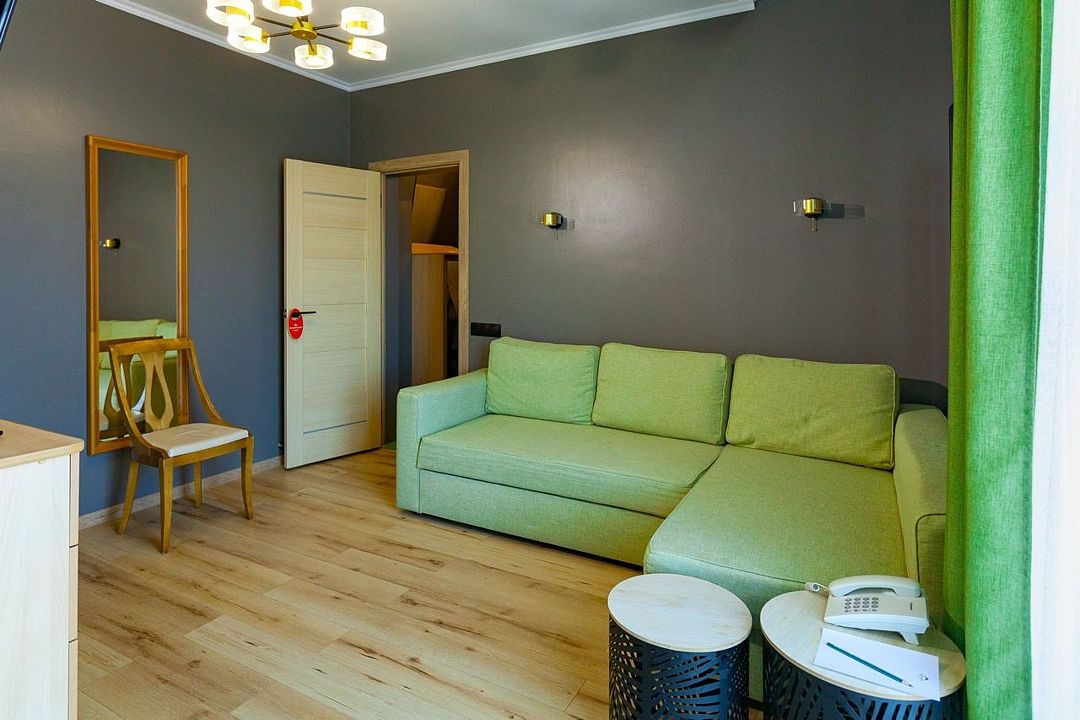 Просторный однокомнатный двухместный номер с возможностью дополнительного места. Уютный и очень удобный.
