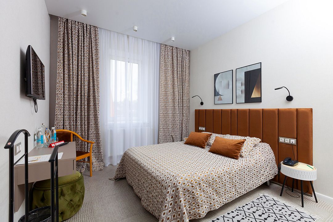 Новые и просторные номера после ремонта. Модный дизайн, уютный двухместный номер с возможностью дополнительного места. Из номера открывается красивый вид на Черноголовский пруд.