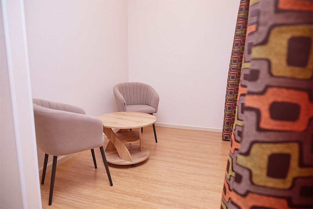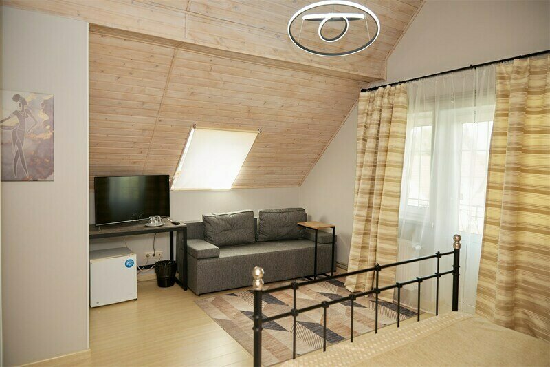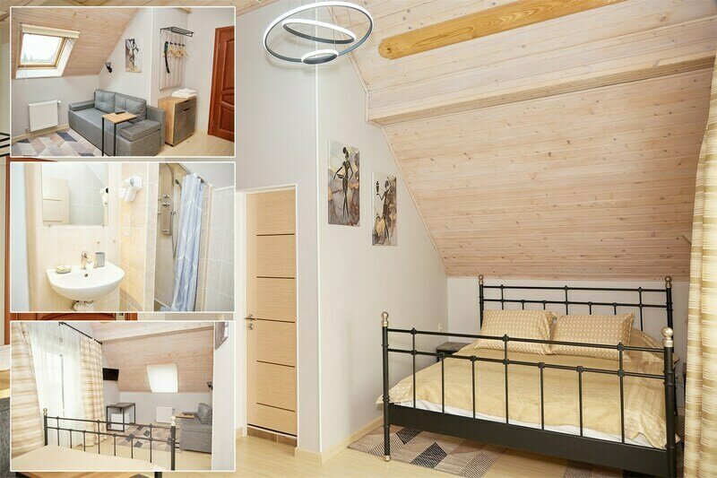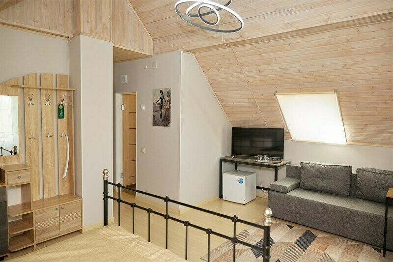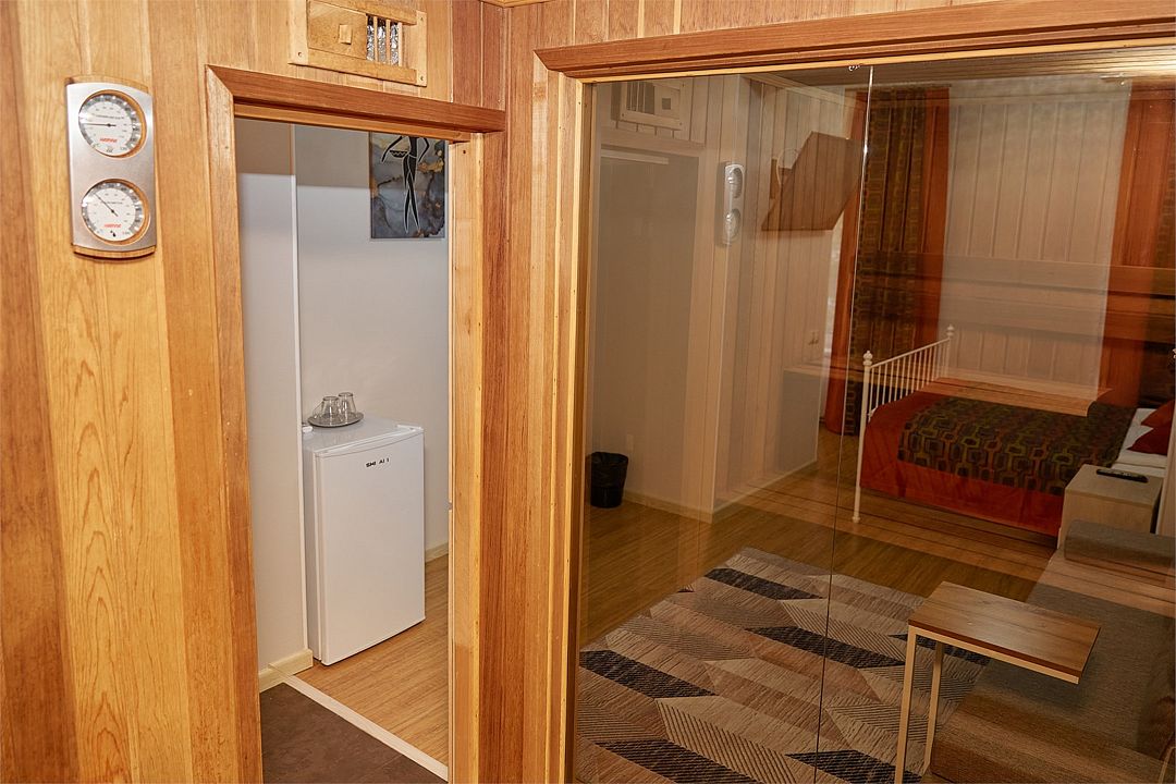 Номер Семейный с сауной для комфортного размещения 2-4 человек. В номере расположена двуспальная кровать и раскладной диван. Зона отдыха с креслами. Возможна установка детской кроватки. Финская сауна находится в номере.