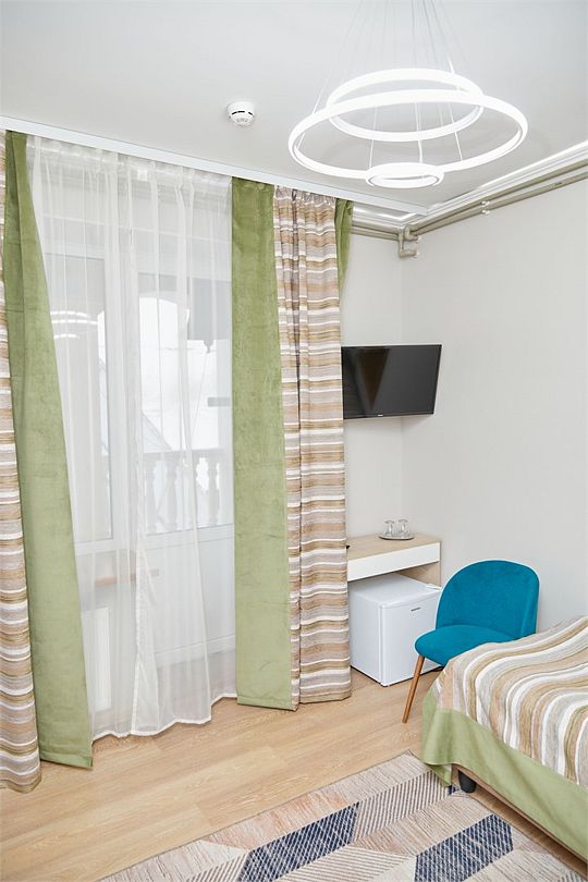 Улучшенный номер для комфортного размещения 2--3 человек. В номере расположены две односпальные кровати . Возможна установка детской кроватки. В номере также расположено кресло-кровать или диван.
