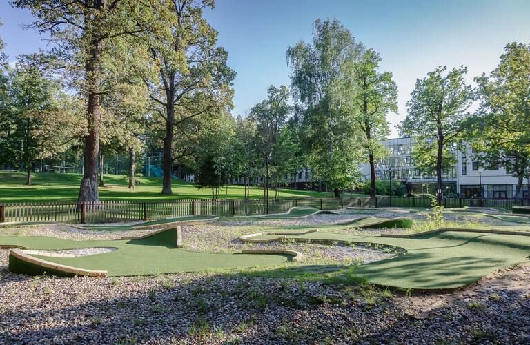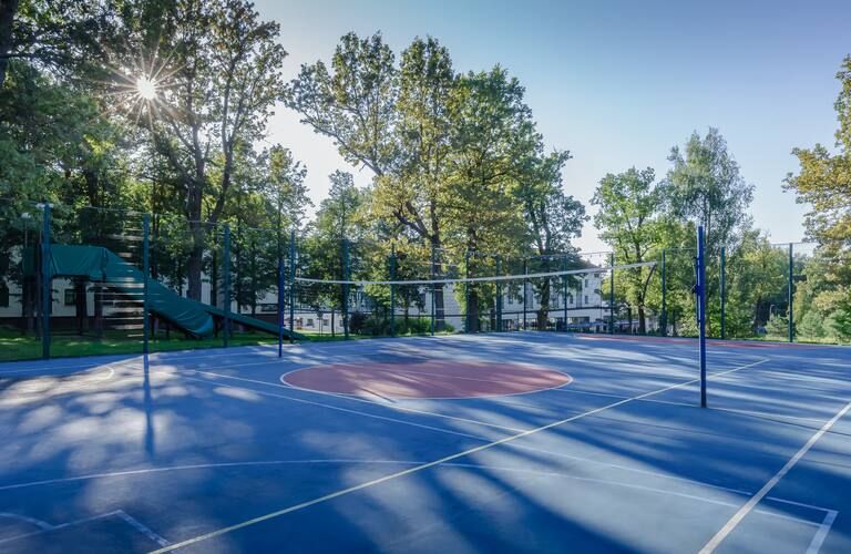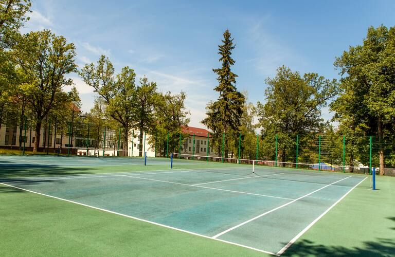 На территории отеля есть фитнес-центр, крытый бассейн, открытые спортивные площадки, пруд и детская площадка.