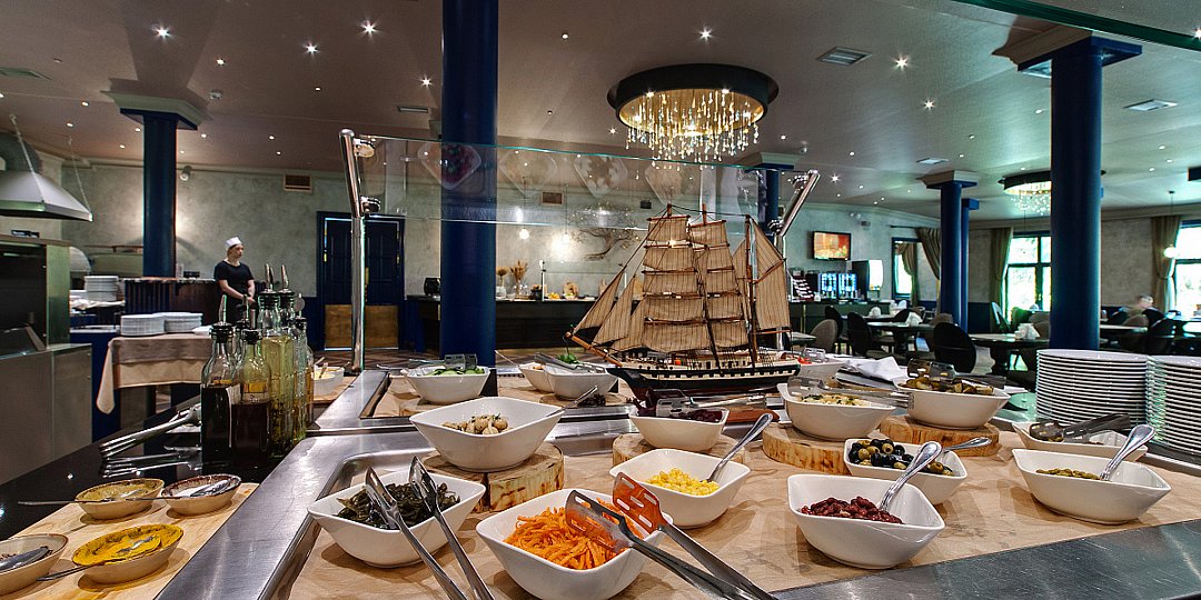 В отеле работает ресторан европейской и русской кухни, а также летние кафе и бары. Развитая инфраструктура включает крытый бассейн, сауну, тренажерный зал, wellness- и SPA-центры, русскую баню и развлекательный комплекс. Для активного отдыха оборудованы спортивные площадки, а для детей – игровые зоны. Бизнес-гостям доступны четыре конференц-зала. К услугам всех гостей – бесплатная парковка.