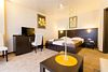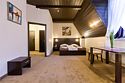Просторный номер ЛЮКС выполнен в стиле «Студио» — состоит из двух зон — гостиной и спальни. Светлые воздушные тона в интерьере контрастируют с яркими цветовыми акцентами и создают неповторимую торжественную атмосферу.