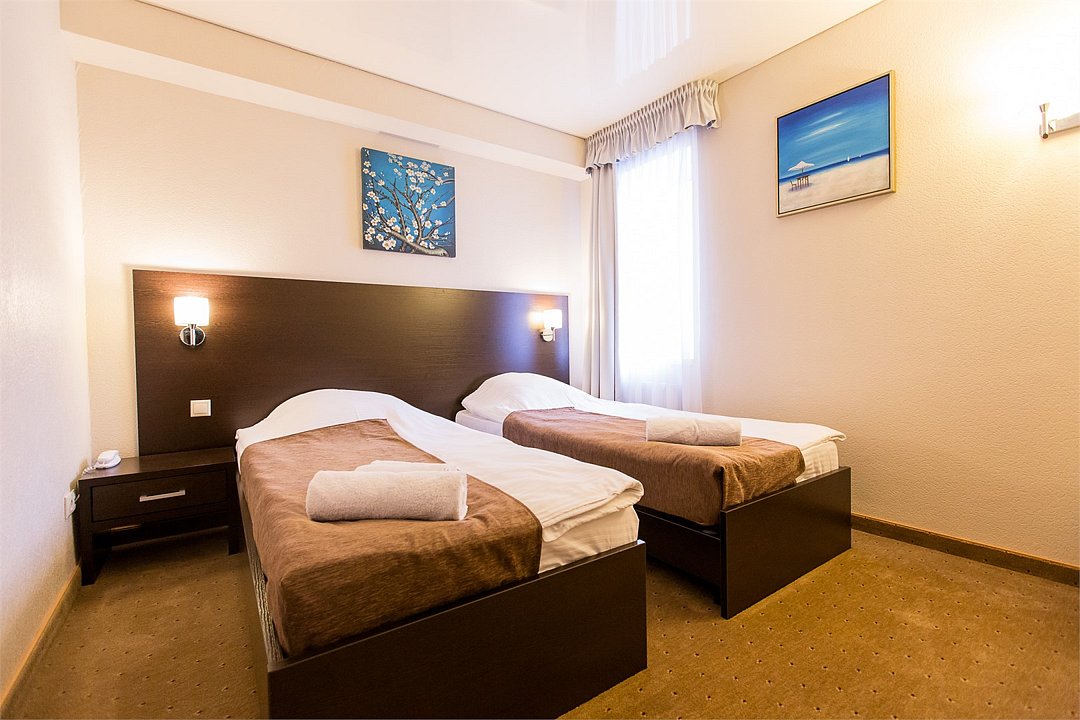 Просторный однокомнатный номер СУПЕРИОР с широкой кроватью и или двумя раздельными кроватями. Светлый и просторный номер с легким лаконичным декором в сочетании с функциональным дизайном – номер прекрасно подойдет как для короткой поездки, так и для длительного отдыха.