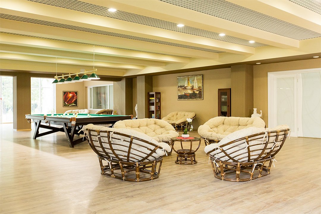 Анимационная команда подготовила захватывающие конкурсы и игры для всех возрастов. Для любителей активного отдыха предусмотрены катание на лыжах и тюбингах, а также оборудованная спортивная зона с бильярдным столом и теннисными кортами. Для детей предусмотрена игровая комната, а для семейного досуга — уютный кинотеатр.