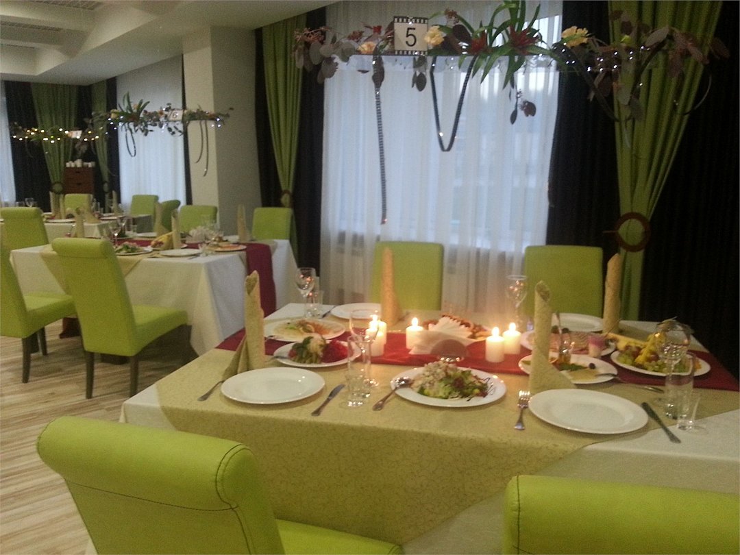Свежий воздух, красивые пейзажи, уют и комфорт отеля, приветливый персонал, удобное размещение гостей и молодоженов в номерах, разнообразие изысканного меню — отличные условия для создания романтичного праздника!