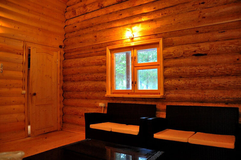 Инфраструктура: тапочки, зона отдыха, простыни, шапочки, душРусская баня с комнатой отдыха и открытой зоной отдыха. Просторная, уютная постройка из натурального отцилиндрованного бревна, предполагающая размещение до 6 человек. В помещении находятся: просторная парная с удобными скамьями, уютная комната отдыха, раздевалка и душевая.