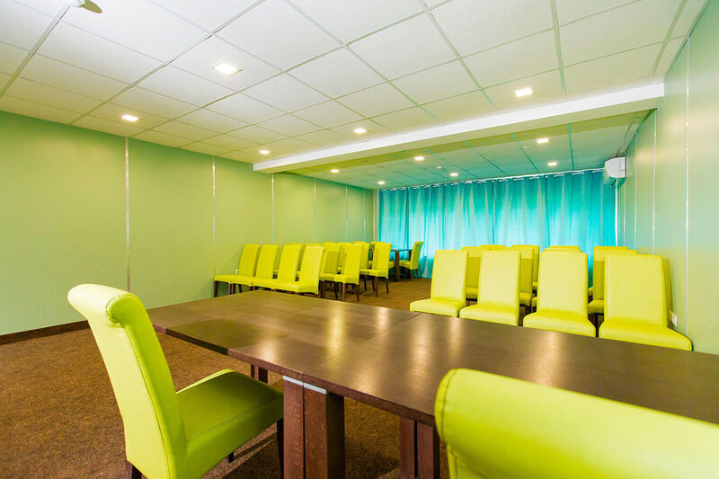- конференц-зал №1 (конференц-зал отеля вмещает до 150 человек, зал оборудован: проектором и стационарным экраном, звуковой и световой аппаратурой, микрофонами, выделенным местом оператора звукового и светового сопровождения);