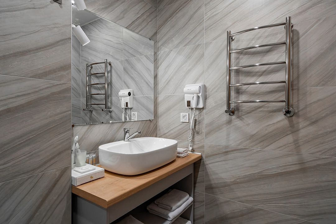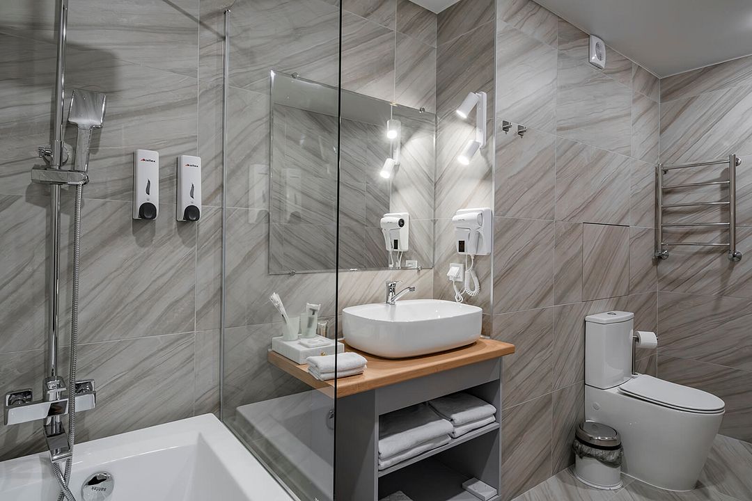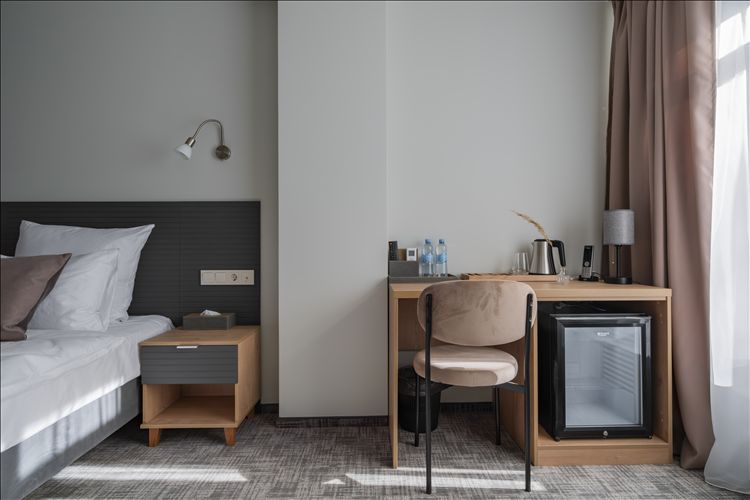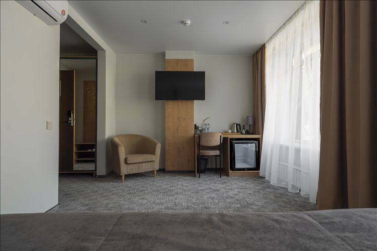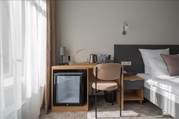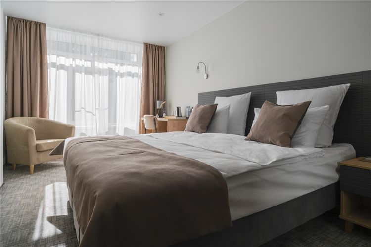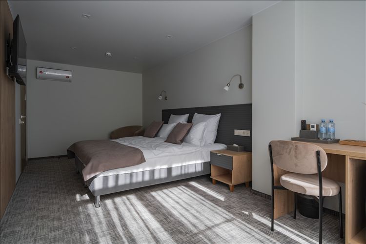 В номере одна двуспальная кровать или две односпальные на выбор. Комплектация номера может отличаться от представленной на фотографиях.