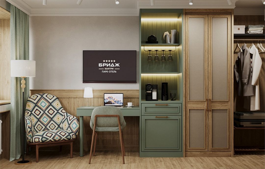 Уютный и функциональный номер, спроектированный с особым вниманием к комфорту и свободе передвижения.
