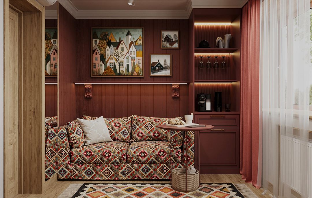 - просторная гостиная со вторым светом, раскладным диваном, smart-ТВ и сплит-системой;