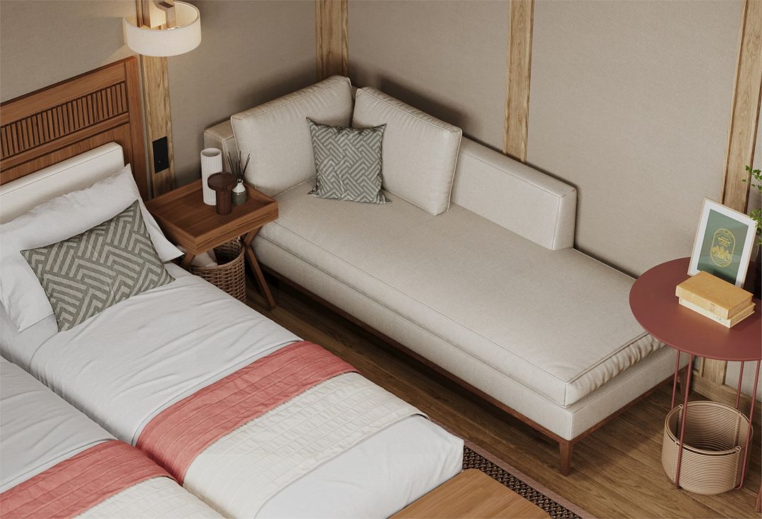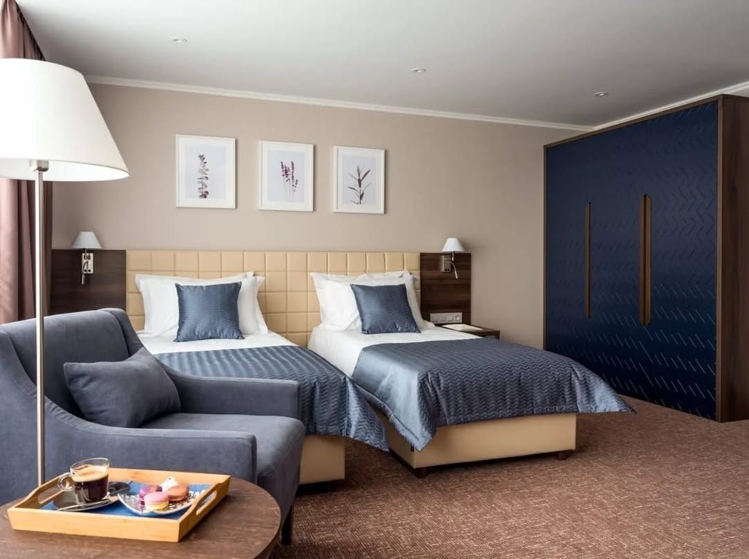 Уютный функциональный номер, оформленный в естественных природных оттенках с теплыми песочными текстурами и мягкими переливами. Пространство идеально сочетает комфорт и функциональность, создавая атмосферу для полноценного отдыха. В распоряжении гостей — кровати на выбор с анатомическими матрасами, а также меню подушек для индивидуального комфорта. Для удобства гостей предусмотрены все необходимое для приготовления чая и кофе.