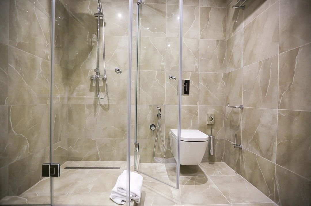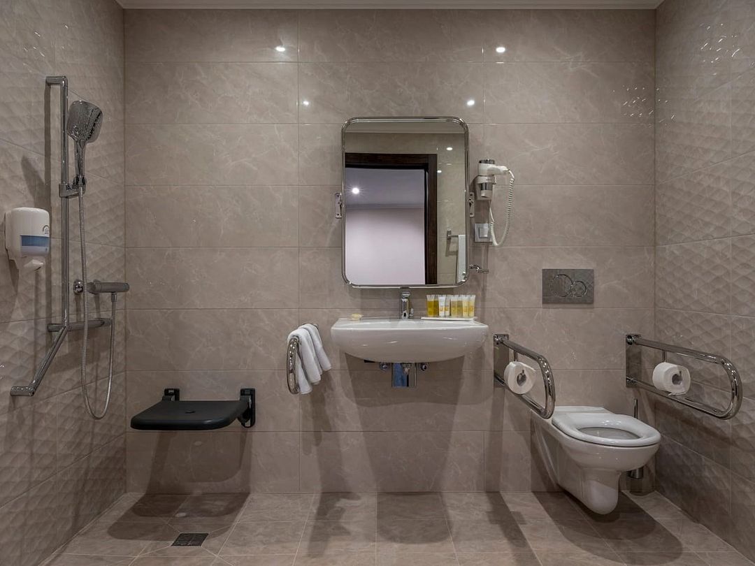 Пространство продумано до мелочей: широкие проходы обеспечивают легкость перемещения, а эргономичная мебель и современная сантехника учитывают потребности гостей с ограниченными возможностями. Каждая деталь интерьера направлена на то, чтобы сделать пребывание максимально удобным и безопасным.