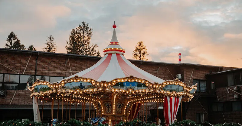 На площадках есть горки с лазилками, подвесные качели-гамаки, карусели и свободная зона для игр. Все площадки в свободном доступе и обязательно порадуют маленьких гостей Курорта.