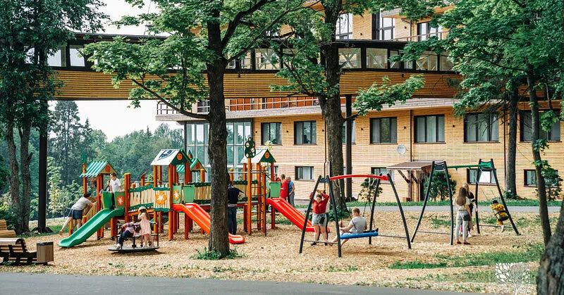 На территории Курорта Русские Сезоны Пересвет имеется 3 детских игровых площадки, две из них с монолитным резиновым покрытием.