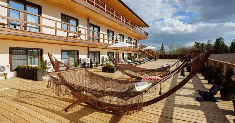 Спа-отель соединён с Комфорт и Конгресс отелем тёплым переходом. Расположиться гостям предлагается в номерах категорий Супериор и Джуниор сьют. В последней можно выбрать номер с личной сауной. Все комнаты оснащены телевизором, цифровым тв, Wi-Fi, а также чайным набором и собственной ванной комнатой.