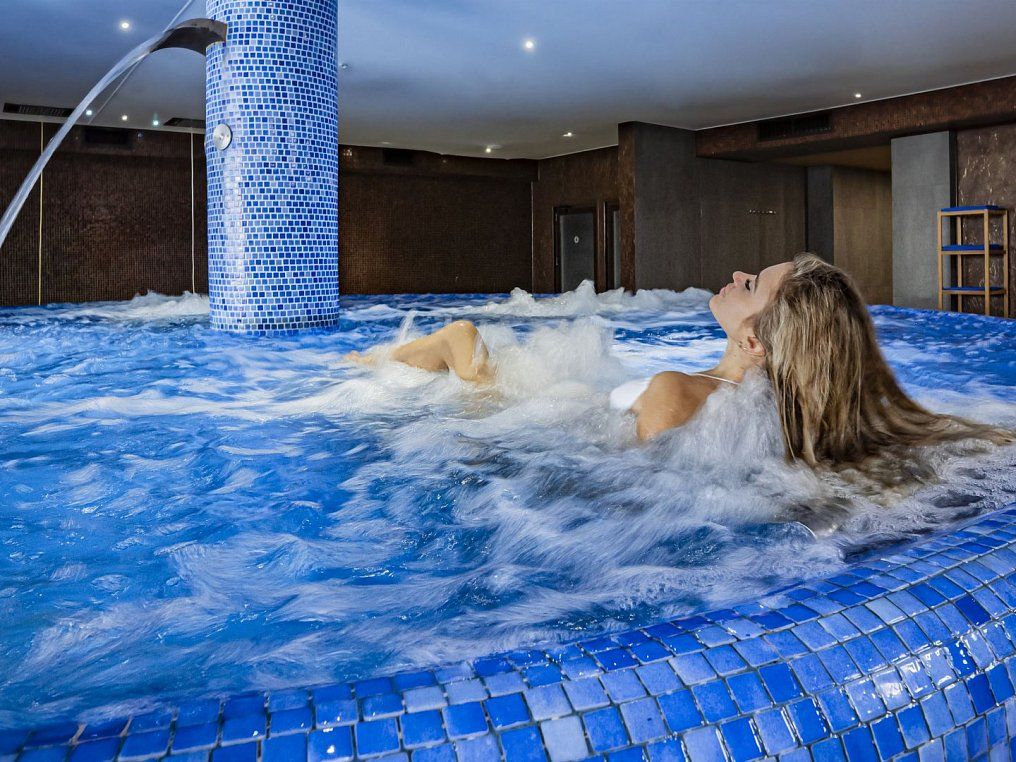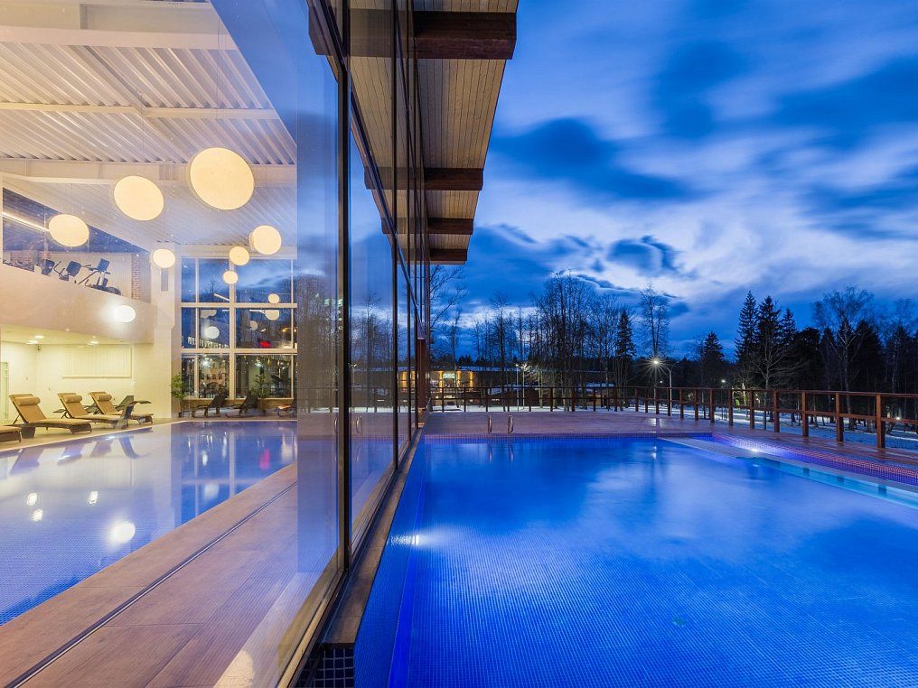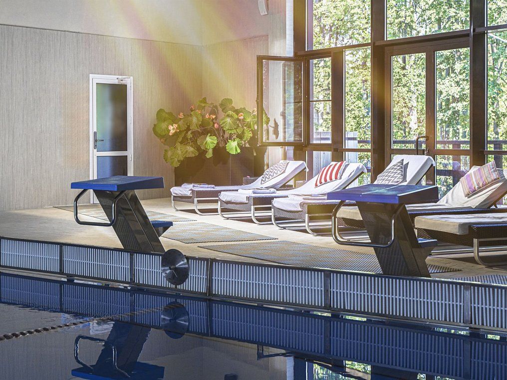 На первом этаже Спа отеля находятся большой спортивный бассейн на четыре дорожки с саунами, термальная спа-зона, хаммам с соляной комнатой и оздоровительный спа-центр с массажными кабинетами. Также гостям доступна вся остальная инфраструктура курорта: тренажерный зал, банный комплекс, игровая комната, беседки и многое другое.