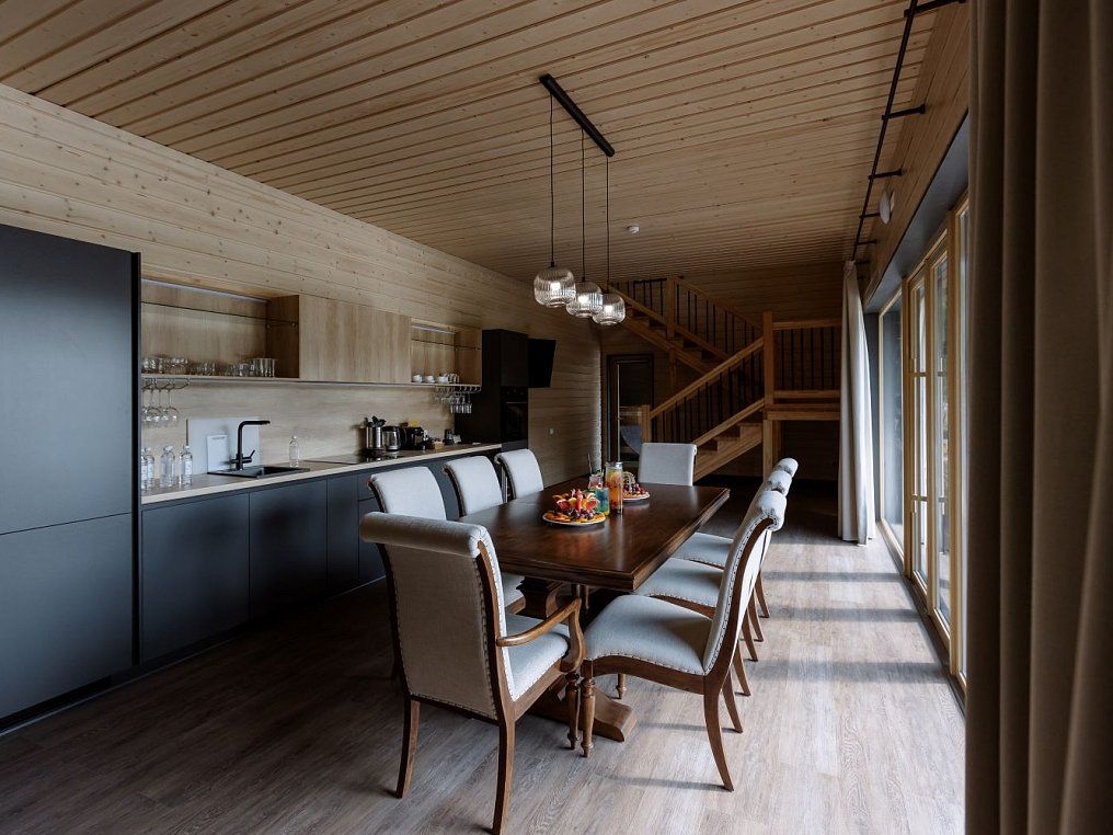 (1 этаж: Трапезная, Кухонная зона, ТВ, парная, холодная и теплая купели, душ, санузел)