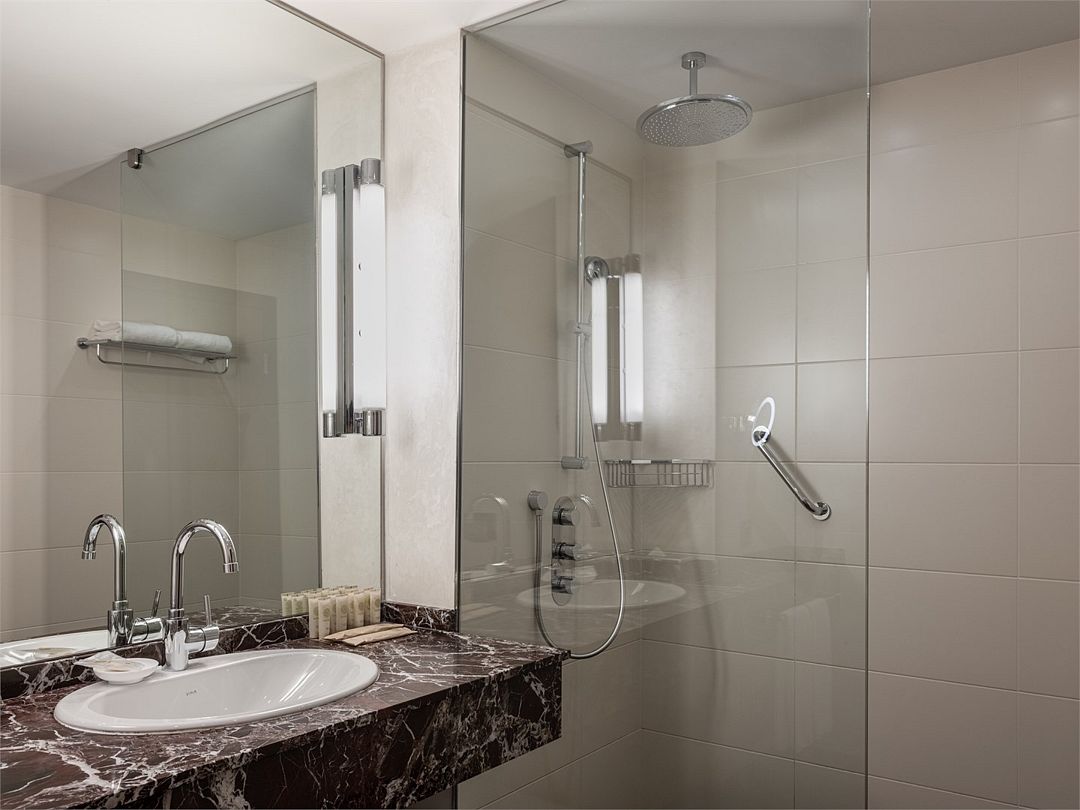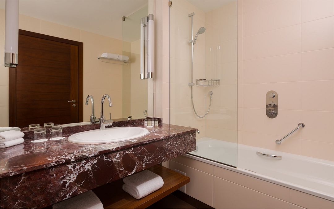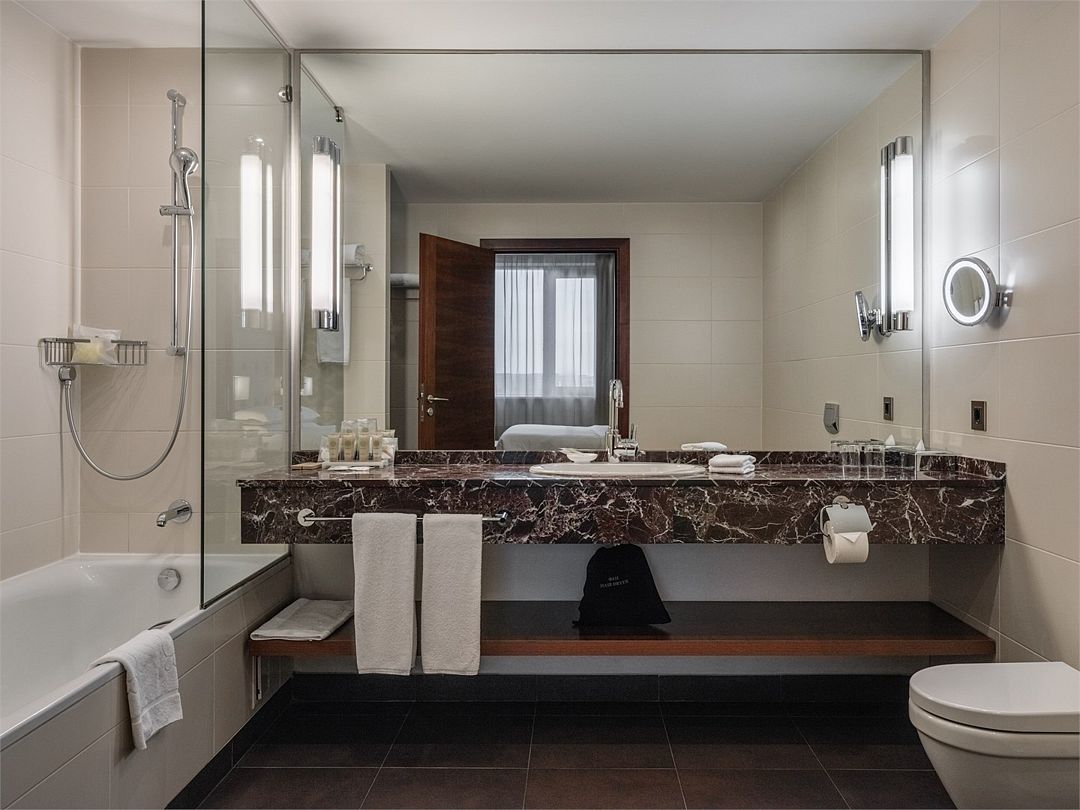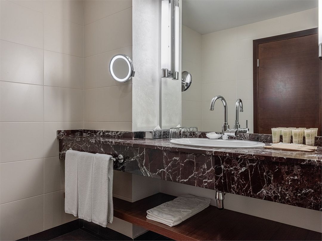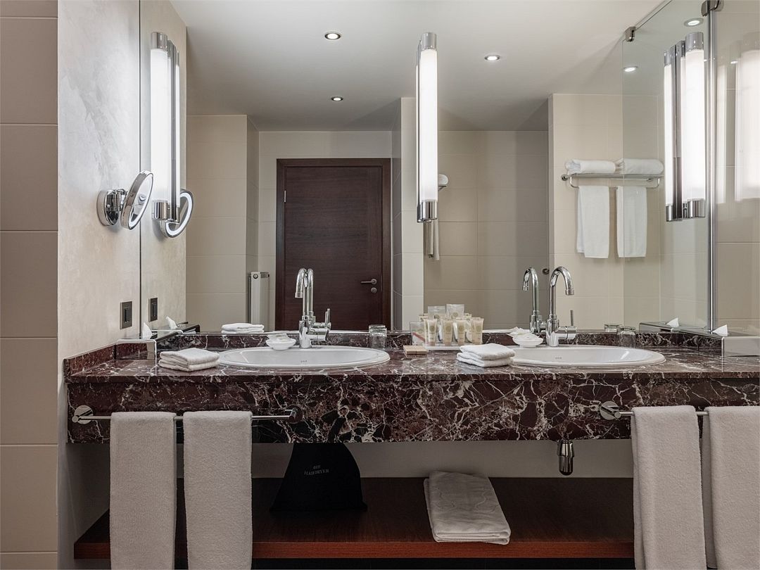 спутниковое телевидение, Wi-Fi, телефон, кондиционер, фен, электронные замки, кофемашина, утюг, ванна или душевая кабина, банные принадлежности, халаты, банные полотенца, тапочки, кровать «King size», гладильная доска, шкаф для одежды, вешалки, журнальный столик, багажная тумба, зеркало, мини-бар, чайный набор, обслуживание номеров, сейф, минеральная вода, чайник, раковина, косметическое зеркало, ковровое покрытие, отопление, центральное кондиционирование, стул, тумба, туалетные средства, туалет, диван-кровать, раскладной диван, телевизор с плоским экраном, гостиничная парфюмерия, номер для некурящих, рабочий стол, общественный бассейн, неограниченное посещение СПА, фитнес-зона, чайная станция, можно с питомцами, лежанка, мискаВ гостиничном номере