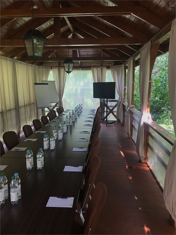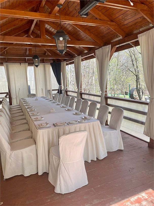 Инфраструктура: купель, полотенца, простыни, душТемпература парения: 60 °CМинимальное время аренды: 2 часаВремя работы: от 11:00 до 20:00Рассчитана на 6-8 человек. Веранда может вмещать до 20 человек. Огромный стол позволяет собраться большой и дружной компании. Баня оборудована купелью на веранде.