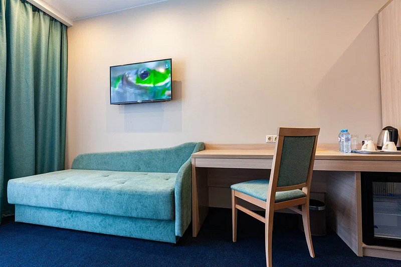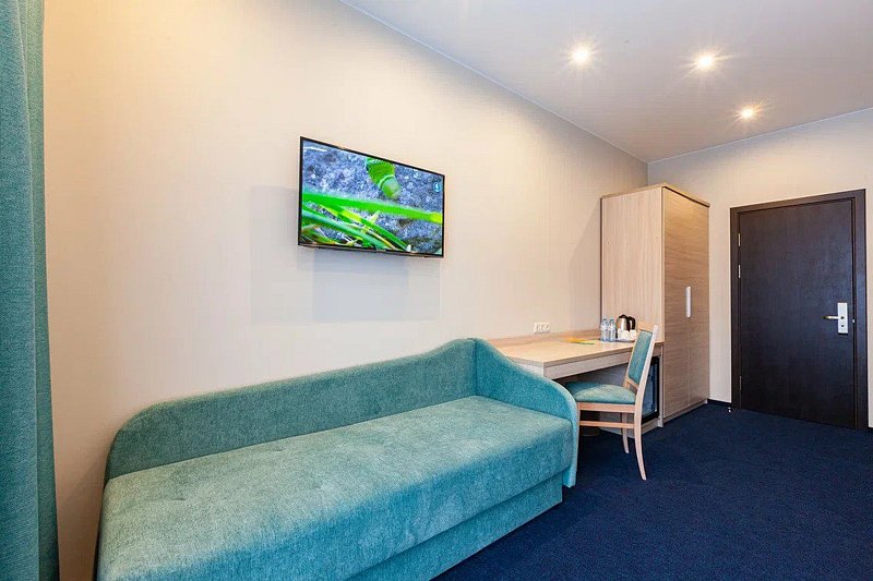 Однокомнатный номер на 2-х гостей с возможностью размещения дополнительного места для юных гостей до 12 лет на кушетке в номере.
