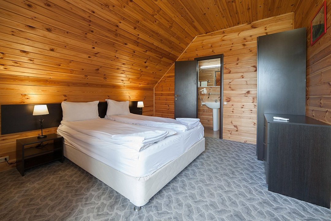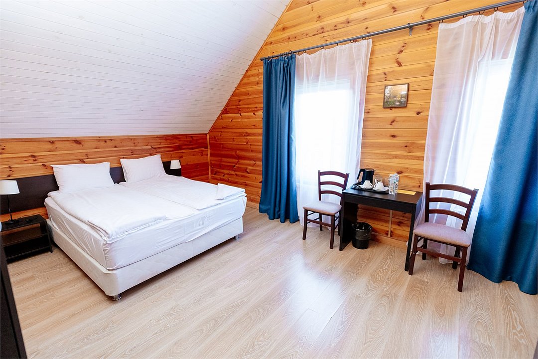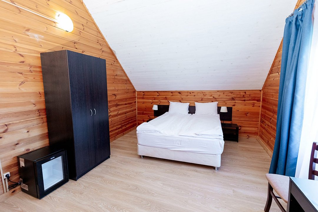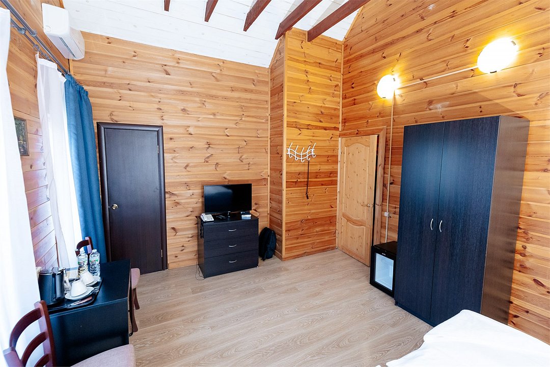 Номерной фонд гостиницы включает уютные номера на двоих и коттеджи для больших компаний, а современный гостиничный корпус на 32 номера идеально подходит для размещения корпоративных и частных гостей. Благодаря ресторанной кухне, гостям предоставляется разнообразие плана питания