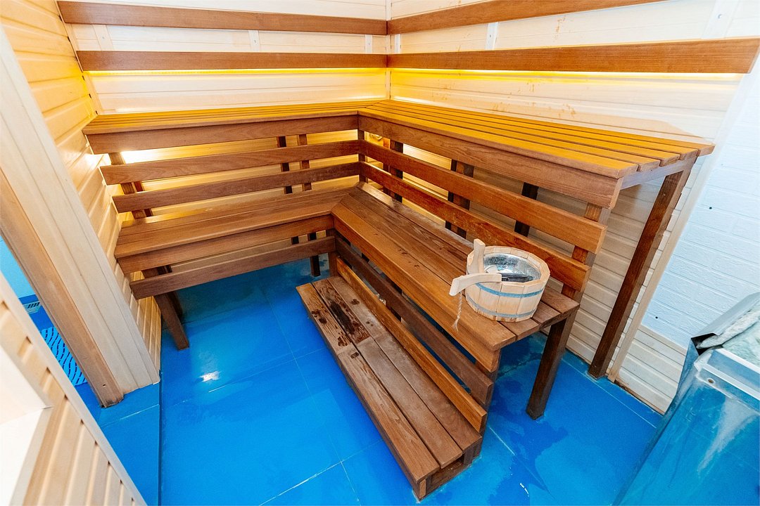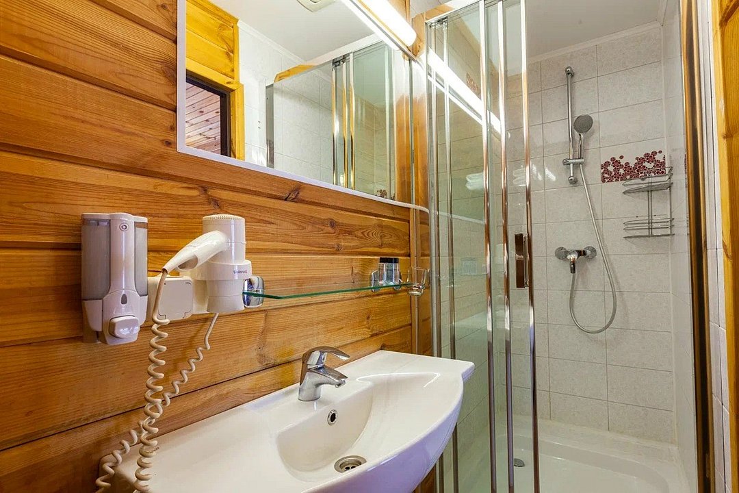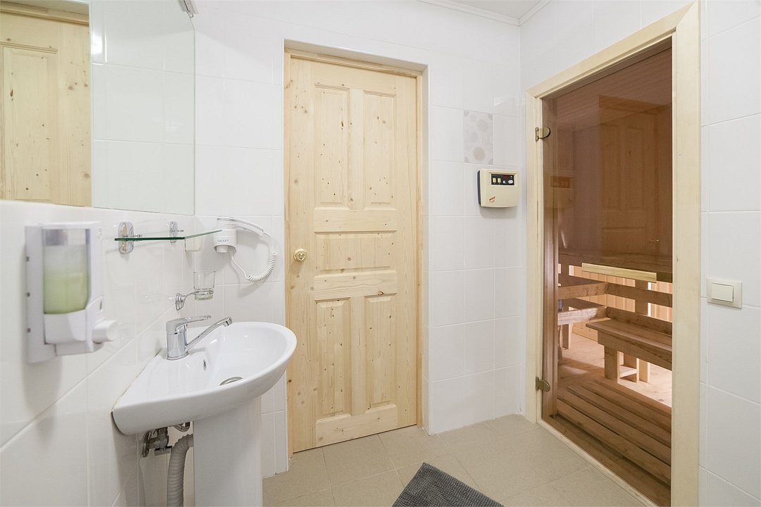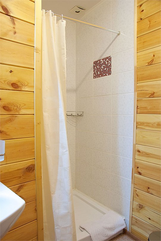 - душевая комната с сауной на 1 этаже и душевая комната в комнате с двуспальной кроватью на 2 этаже.