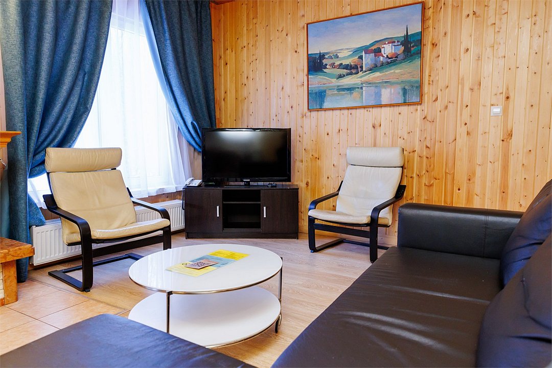 - гостиная с набором мягкой мебели и кухней, газовая плита, два LCD TV;