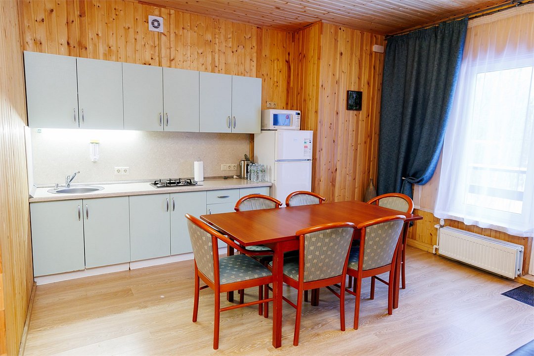 Каждый коттедж оборудован кухней с обеденной группой для Вашего удобства.