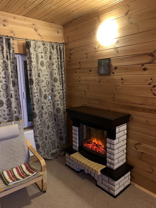 Двухэтажный современный коттедж с центральным отоплением, оборудованный уютной мангальной зоной для барбекю. Возможно размещение 4 гостей + 2 детей на дополнительных местах. Камин является элементом декора номера и не является действующим.