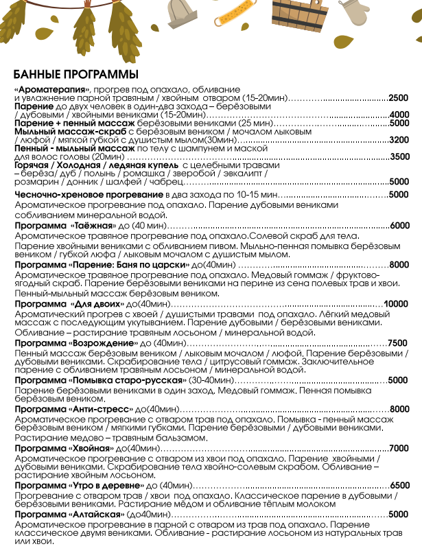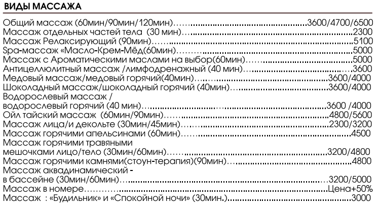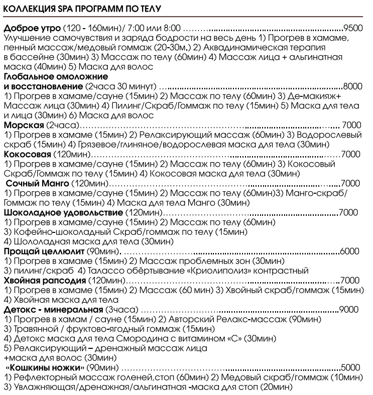 - посещение SPA комплекса — 90 минут в день на гостя (запись предварительная);