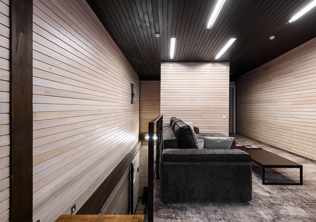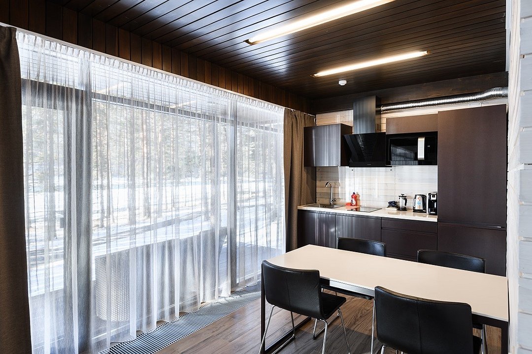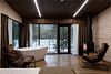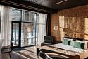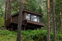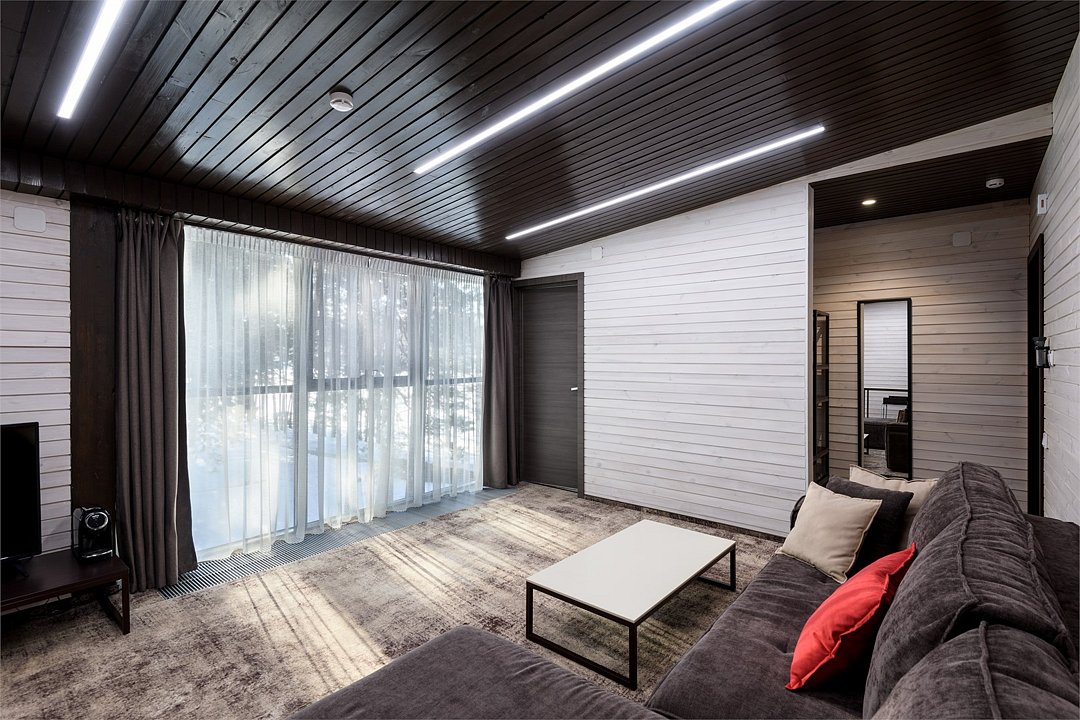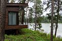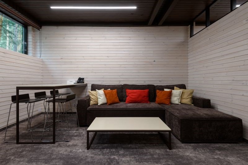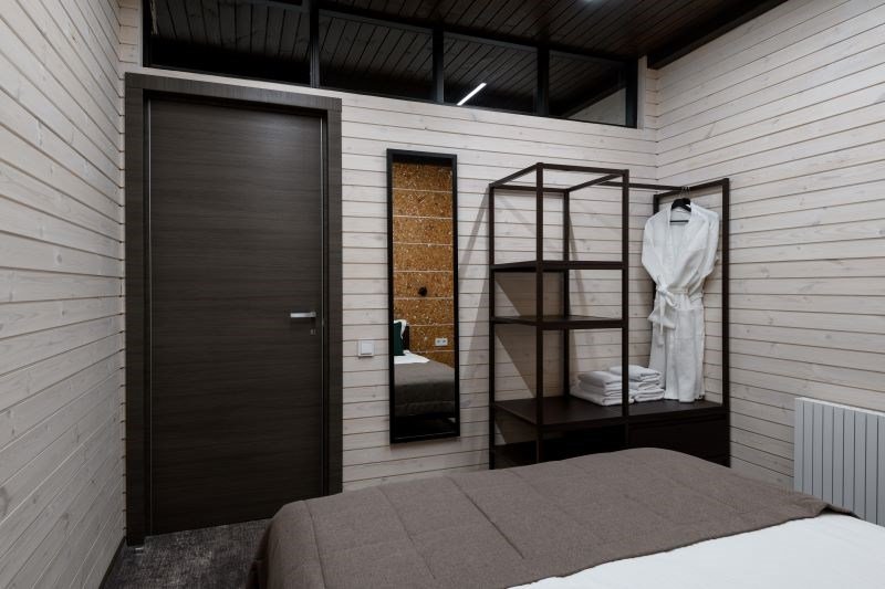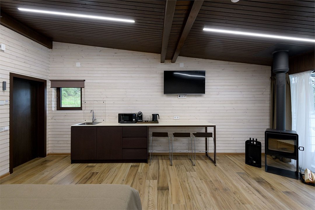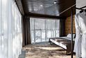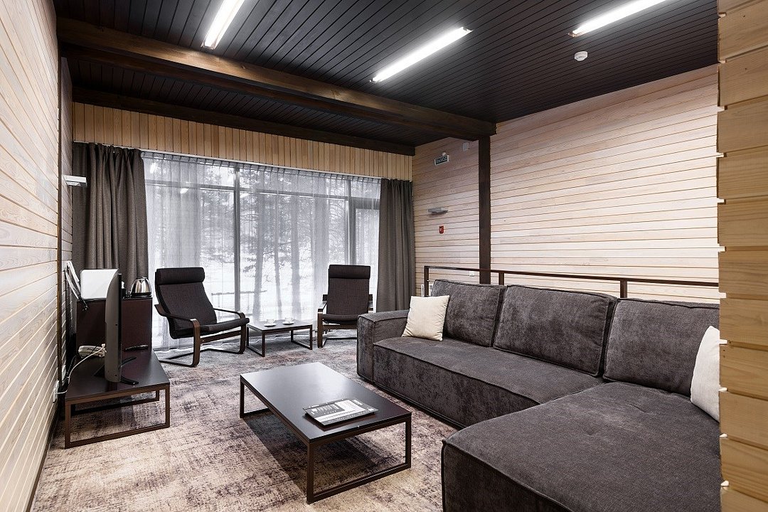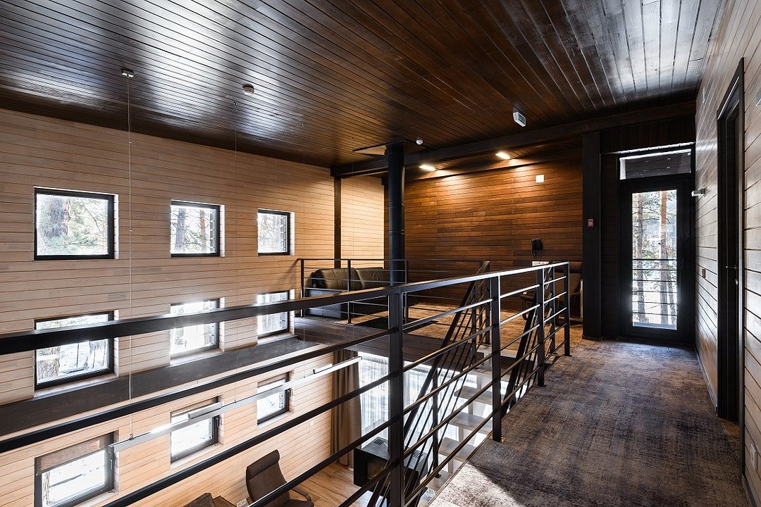 Номер расположен в основном корпусе эко-отеля на втором этаже. И гостиная и спальня имеет панорамное остекление.