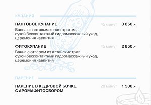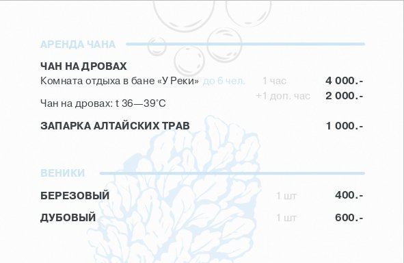 - бронирование бани (до 4 человек) — 4000 ₽ / 2 часа;