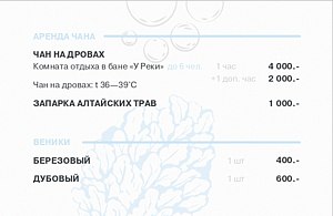 - бронирование бани с чаном (до 6 человек) — 9000 ₽ / 2 часа;