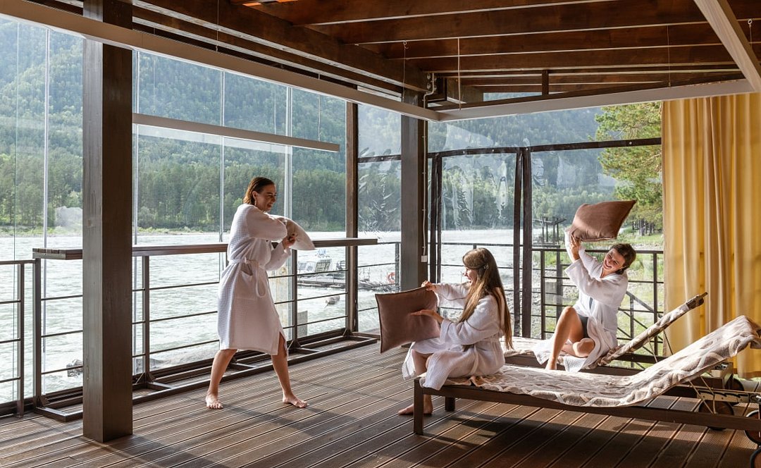 Вы можете пригласить подруг, провести время вдвоем или насладиться процедурами в уединении на фоне живописных алтайских пейзажей.