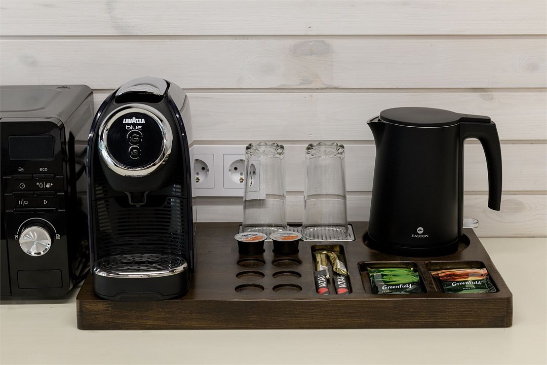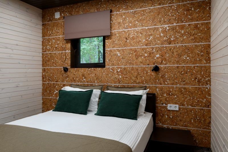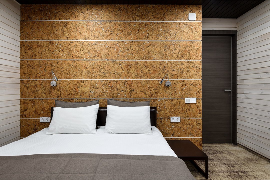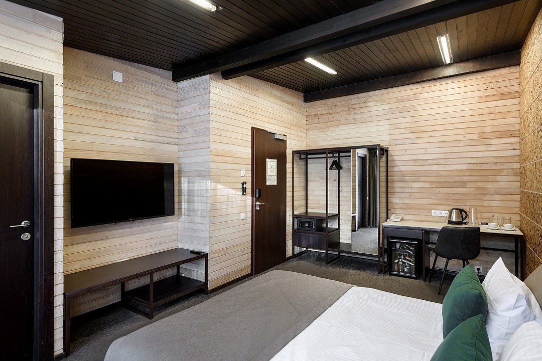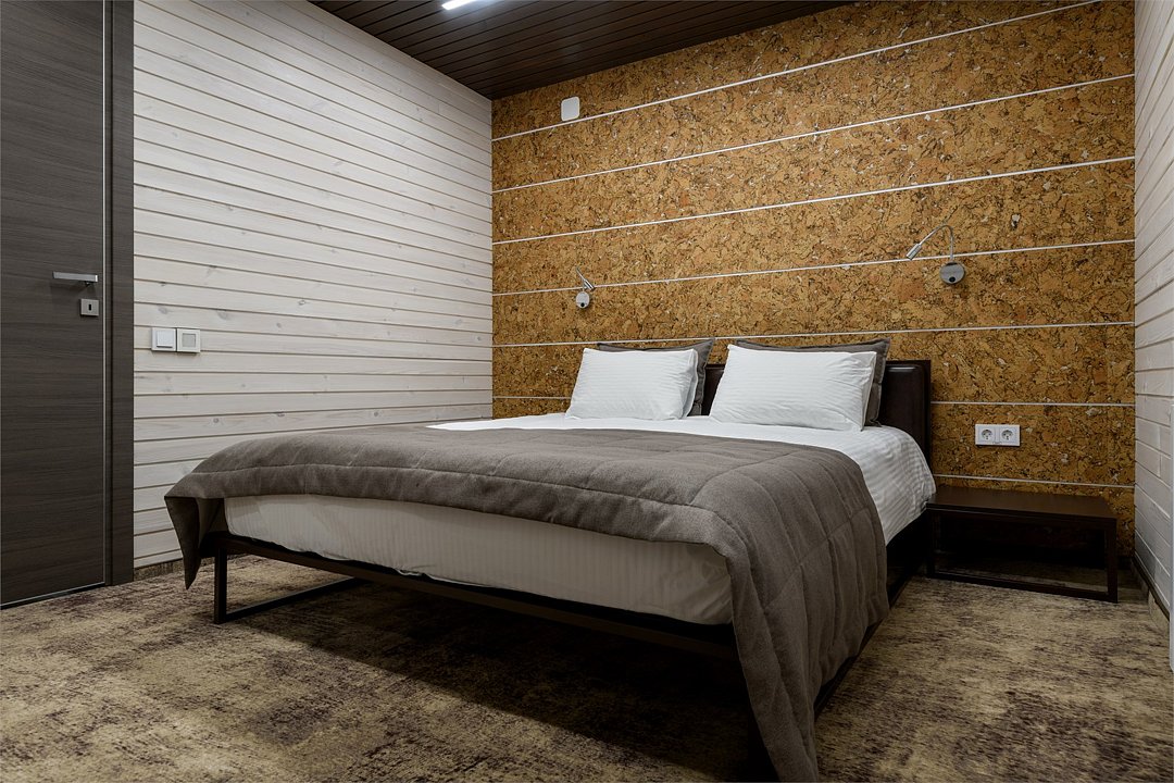 Уютный номер расположен в основном корпусе ЭКО-отеля. Одна из стен любого номера категории «Стандарт» — панорамное окно.