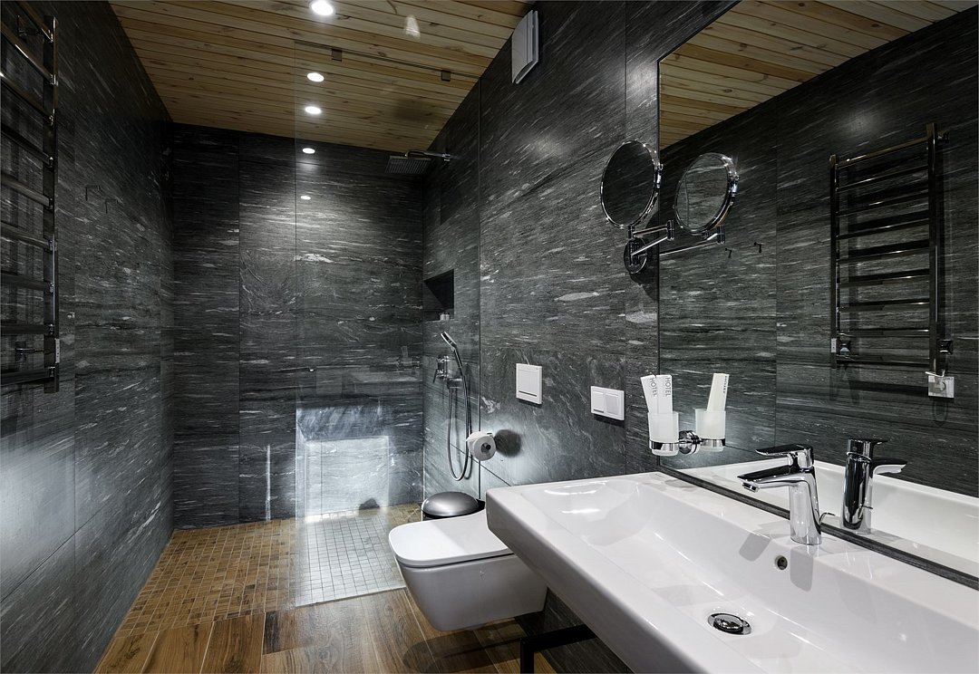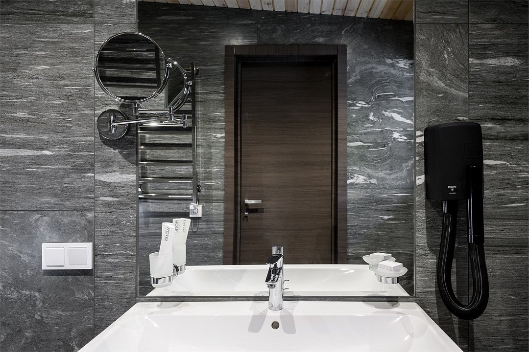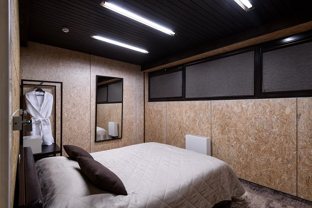 Номер расположен в основном корпусе эко-отеля на третьем этаже. Номер состоит из гостиной и двух спален.
