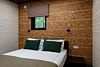 Просторный номер в коттедже «F» с панорамным окном с видом на реку и мини-кухней. Вместимость: два основных места, одно дополнительное. Площадь номера: двадцать восемь квадратных метров.