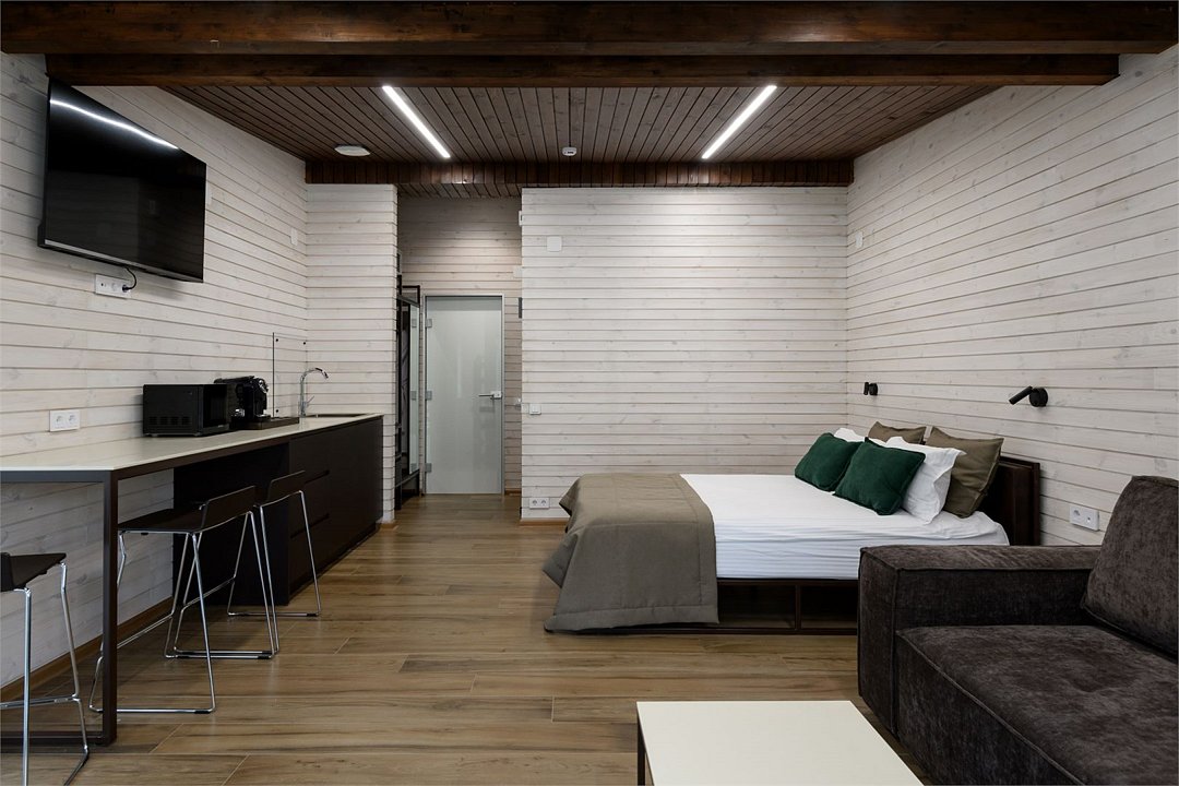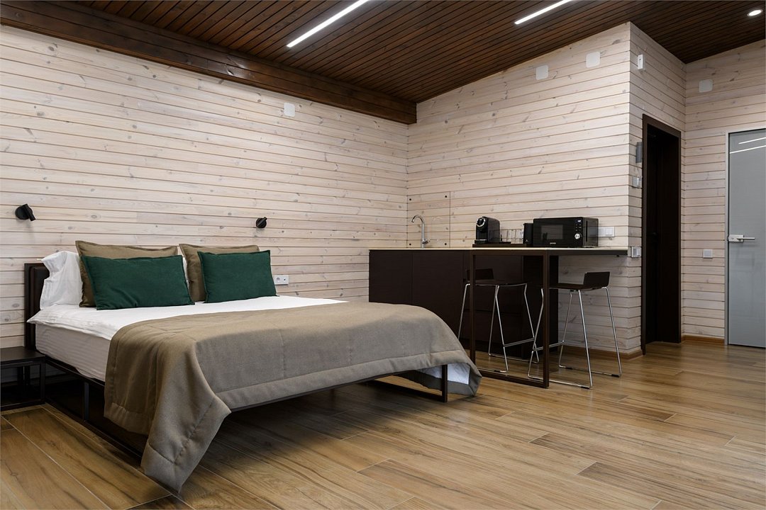 - Проживание с домашними животными в номерах категорий «Дуплекс» и «Коттедж студия» возможно при условии доплаты в размере 5000 ₽ за каждые три дня проживания.