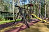 На игровой площадке представлено множество объектов, которые способствуют веселому времяпровождению детей и развитию их физических навыков. Здесь можно увидеть горку, песочницу, традиционные и современные качели, карусели, мини-скалодром, бокс для лазания и сооружения для прыжков.