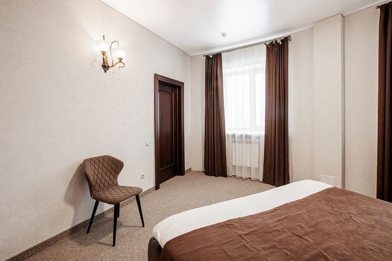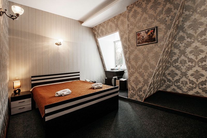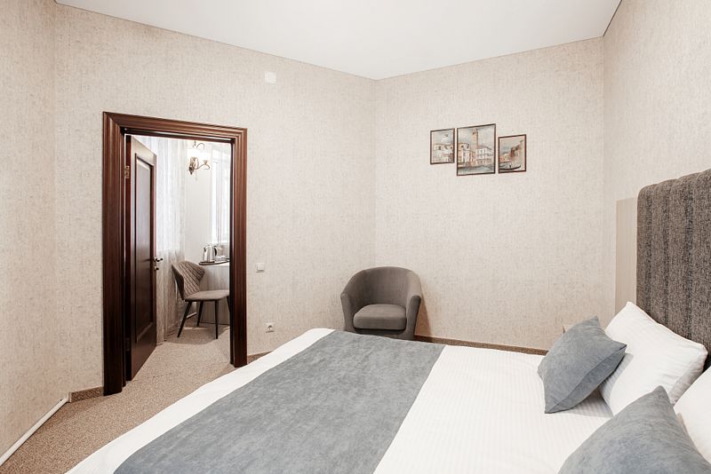 Достаточно просторный номер с новым ремонтом. Двухкомнатный: гостиная комната и спальня. Позволяет комфортно разместиться двоим гостям. Номер оборудован всем необходимым. В спальне - одна большая кровать.