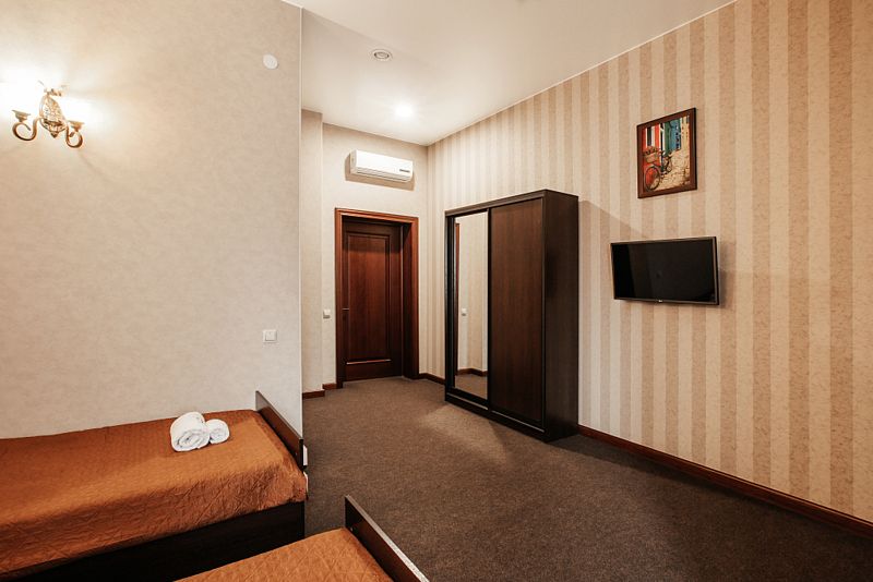 В номерах повышенной комфортности имеется холодильник, чайник, фен. Оснащение зависит от выбранной категории номера.