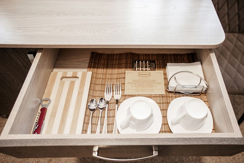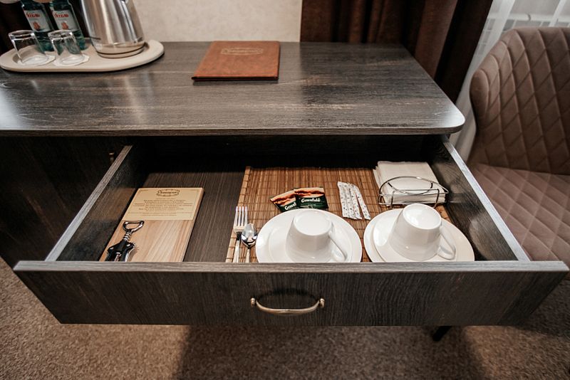 Буфетная зона с чаем, кофе и сладостями расположена на этаже гостиничного комплекса, где гости круглосуточно могут воспользоваться чайником и кулером с холодной и горячей водой.