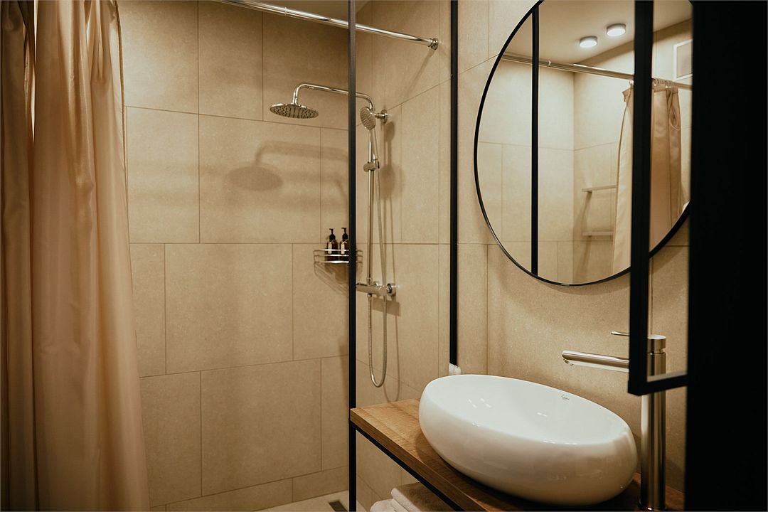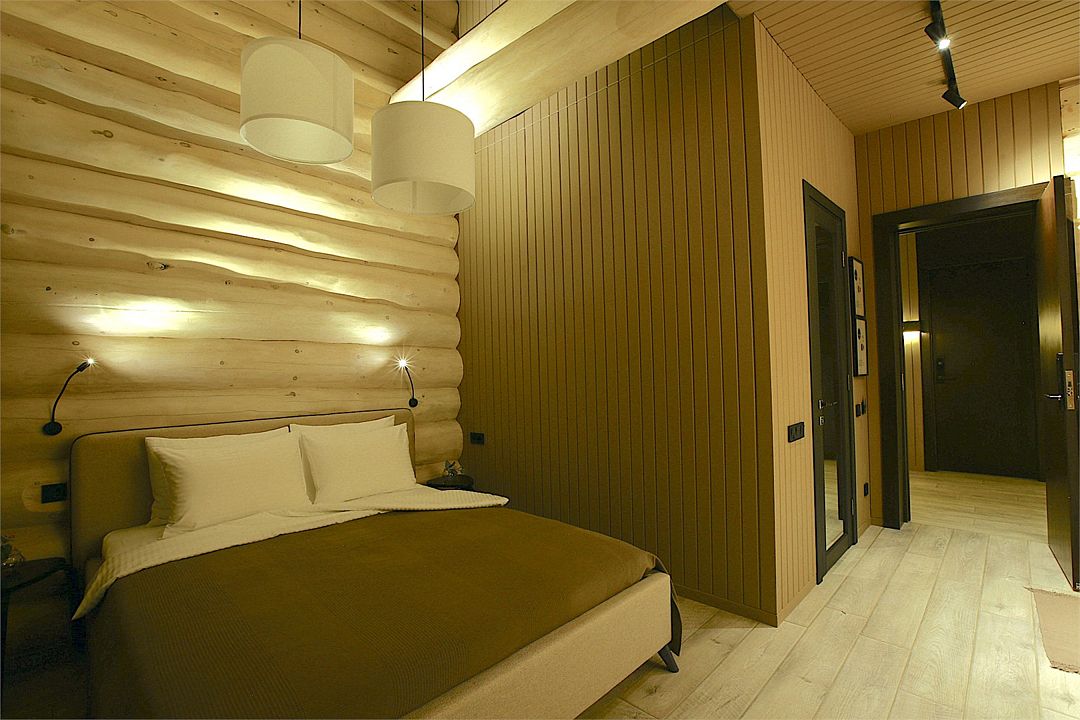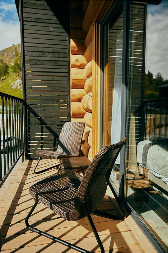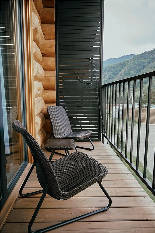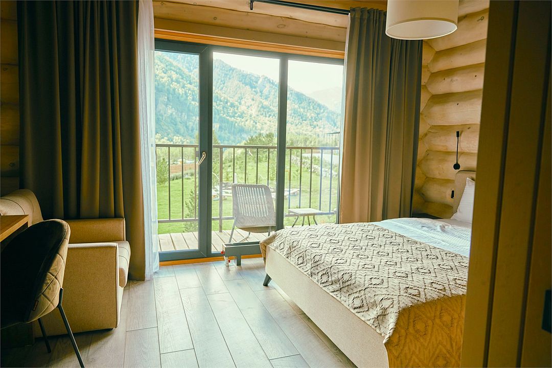 Wi-Fi, фен, кофемашина, теплый пол, халаты, банные полотенца, тапочки, косметические средства, балкон, двуспальная кровать, тумбы, шкаф для одежды, зеркало, чайник, кресло, стул, стол, туалетные средства, мини-холодильник, вид на горы, телевизор со Smart TV, вода из артезианской скважины, без питомцевВ гостиничном номере