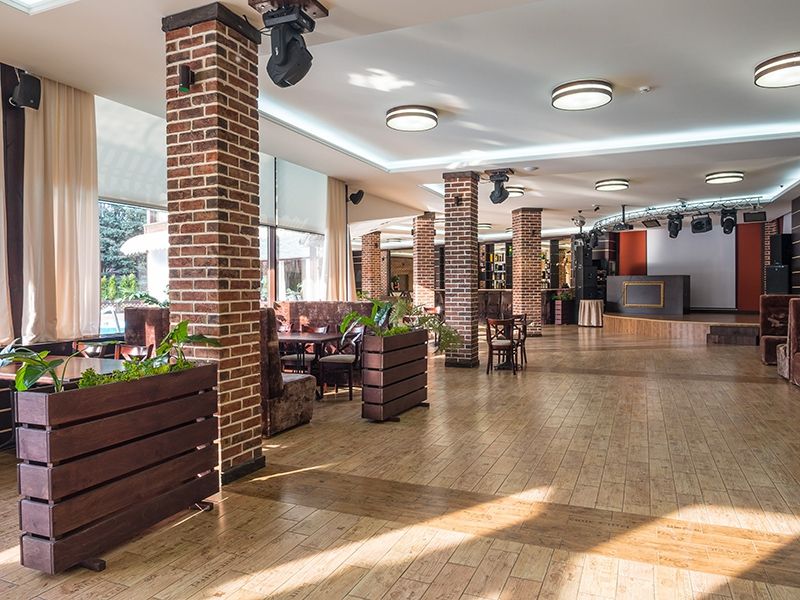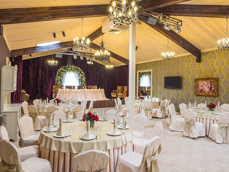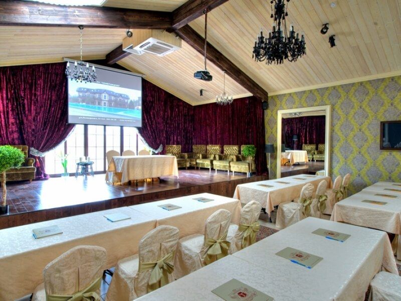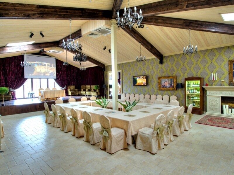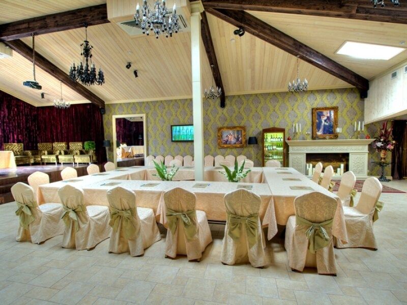 С высокими потолками, элегантным декором стен и стильно накрытыми круглыми столами, банкетный зал станет идеальным фоном для свадьбы в духе европейской классики. Комфортабельные диваны и уютный камин создадут теплую атмосферу для празднований, таких как дни рождения и юбилеи. Благодаря современному оборудованию, здесь можно организовывать деловые встречи, конференции и семинары, а климат-контроль обеспечит комфортные условия вне зависимости от погоды.